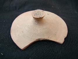| Description / विवरण | It is a flat knobbed lid with fine fabric. Internally it has a conical hole at the center. It is well fired and wheel made. |