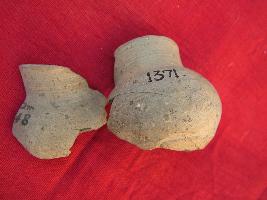 | Description / विवरण | It is a half broken piece of a pot having globular belly, vertical neck and featureless rim. It seems to be wheel made. |