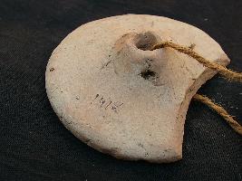 | Description / विवरण | This is a wheel of toycart which is having one circular hole. One side it is plain while another side is projected in center. Plain side is encountered to some extant. It is hand made. |