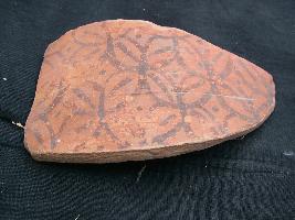 | Description / विवरण | This red slipped undiagnostic potsherd is having geometrical pattern black painting fine fabric. It is wheel made, well fired |