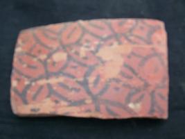 | Description / विवरण | It is a wheel made and fine fabric pot sherd. It is decorated with black colour on red base. It s painting pattern is geometrical intersecting circles |