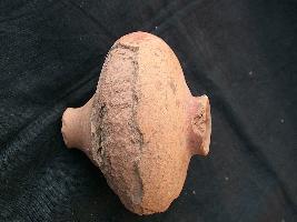 | Description / विवरण | This miniature pot is having projected base, featureless rim and projected globular belly. Outer surface is having red slip which is badly flaked. |