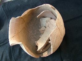 | Description / विवरण | This is a restored vase which is having globular outturned rim, circular flat base and belly, In it restoration marks are clearly visible. It is having cream colour wash on the upper surface |
