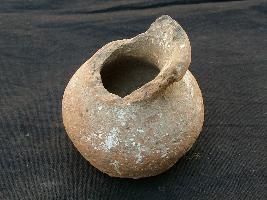 | Description / विवरण | This is a pot which is having circular flat base, globular belly an disfeatured rim. Neck portion of it is partly broken. It is handmade and having medium fabric |
