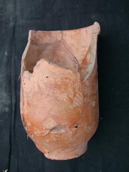 | Description / विवरण | This is a broken beaker. It has a flat base with cylindrical body. It is well fired, wheel made and of medium fabric. It has a featureless beaded rim. huan thump impression also found |