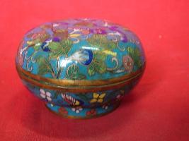 | Description / विवरण | It is a small circular box with colourful enamelled work in floral pattern on sky blue ground. |