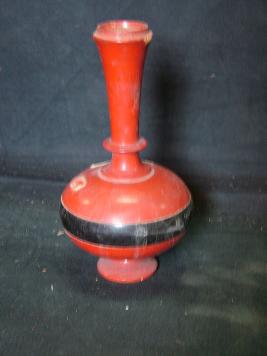 | Description / विवरण | This is a wooden vase painted with bright red and black colour.. |