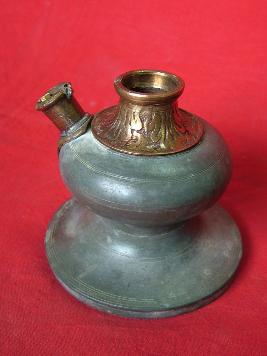 | Description / विवरण | It is a hookah with a brass mouth. Little decoration around the neck. |