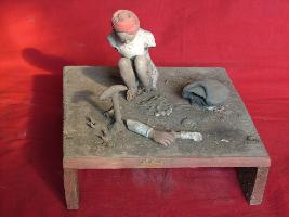 | Description / विवरण | Clay model of a metal smith. Some iron nails and pieces of iron are kept in front of him.Arms are broken of the figure. |