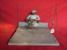 | Description / विवरण | A clay model of a weaver engaged in weaving probably cane threads. |