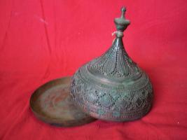 | Description / विवरण | It is a tray and cover for betel. It is carved with floral and leaf multibands. |