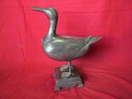 | Description / विवरण | It is a fruit box in form of duck. It can be opened from the middle to keep fruit. It is decorated with floral design. Persian inscription is inscribed on it. |