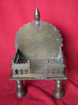 | Description / विवरण | It is a throne for idols carved on a pedestal stand.with four stump legs. Its back has receding multi-foilated cusp arches. Object is in good state. |