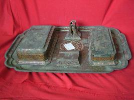 | Description / विवरण | It is a set of tray with two cigraette boxes, ash tray and one stand. Enamelling work is seen all over in floral pattern. |