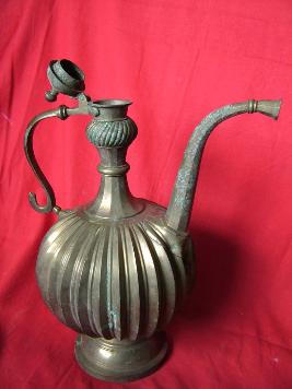 | Description / विवरण | It is a fluted jug with a lid and a handle. A curved a spout is also provided. Object is decorated in the shape of kamrakh or Averrhoa Carambola fruit. Object is in good condition. |