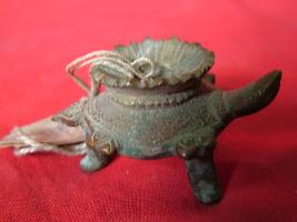 | Description / विवरण | It is a small tortoise shape. Its body part is engraved with triangular floral pattern. |