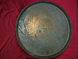 | Description / विवरण | It is an engraved salver. There are mythological figures and floral pattern all over. |