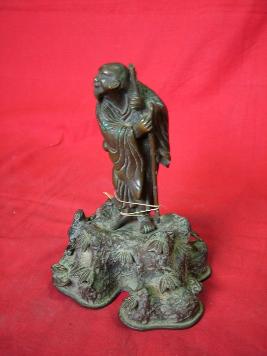 | Description / विवरण | Sculpture of an old man holding staff with a fallen drapery covering his back and front torso and lower body. Pedestal part is decorated with creepers and floral pattern. Sculpture is in good state. |