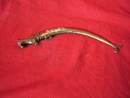 | Description / विवरण | This is a fish shaped antimony holder having a hook. It is engraved with lines. |