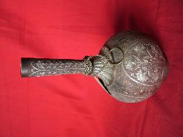 | Description / विवरण | It is a surahi water bottle with silver inlay work. It has engraved floral and leaf designs. |
