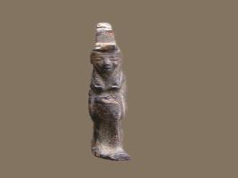 | Description / विवरण | The goddess Isis is represented standing left foot advanced, on a flat rectangular base. She wears on her head the hieroglyph which writes her name. A suspension hole is placed through the center of the back. |