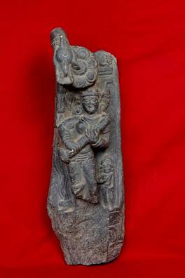 | Description / विवरण | Saraswati with her vina. Fragment of a stele depicting Visnu accompanied by Lakshmi and Saraswati. |