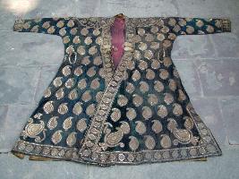 | Description / विवरण | It is a choga, mor gardani, a garment used to wear on upper body. It is green in colour, the object is decorated with peacock feathered structure. Embroidery work is of silver. |