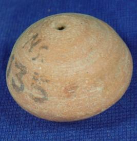 | Description / विवरण | Terracotta bead, betel nut shape with a perforated hole in the centre. |