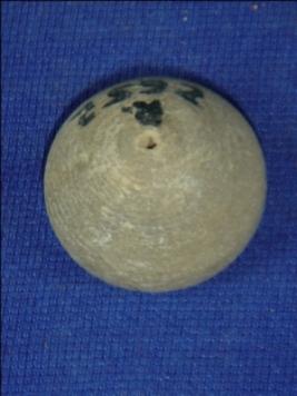 | Description / विवरण | Terracotta bead, betel nut shape with a perforated hole at the centre. |