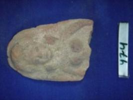 | Description / विवरण | Upper part of a terracotta female figurine in low relief, wearing an elaborate hair style. The body below waist and hands are partially missing. Eyes and lips are depicted with incised lines and she is wearing round ear rings. The whole fragment is almost mutilated. |