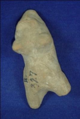 | Description / विवरण | Crude terracotta female figurine, without hands. The figurine has a pinched head, large breasts, broad waist and short legs. The left leg is broken. |