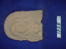 | Description / विवरण | Terracotta figurine of a female in relief. The features of the face are rubbed off but the hair style and round earrings are visible. The hands, necklace and breasts are visible. Portion below the waist are missing. |