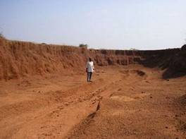 The total thickness of the section seen here was around 3 m. Artefacts are noted on the surface of a 1 m thick duricrust capping a Cenozoic laterite profile. No artefacts were noted within the section at this site. |