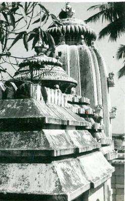 It is a three chambered temple, its sanctum is of in pancharatha rekha design and the porch and dining halls are of pidha design. The exterior walls of the temple are decorated with the affixed sculptures of both cult deities and secular figures. The side deities are Ganesha, Kartikeya and Parvati and the presiding deity is a Siva Lingam. Height of the temple is 35 feet. A brick boundary are encloses the temple complex. |