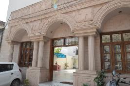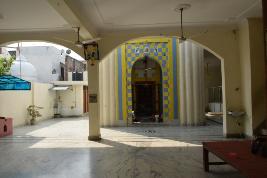 This is a single storey structure approached by semi-circular arch supported by pillars. There are semi-circular arches with windows on the sides of the main entrance. The pillars have decorated dado panels and parapet railing. Inside the structure, there are semi-circular arches supported by pillars. There is a shikhara on the top and pentagonal pillars at the corners. |