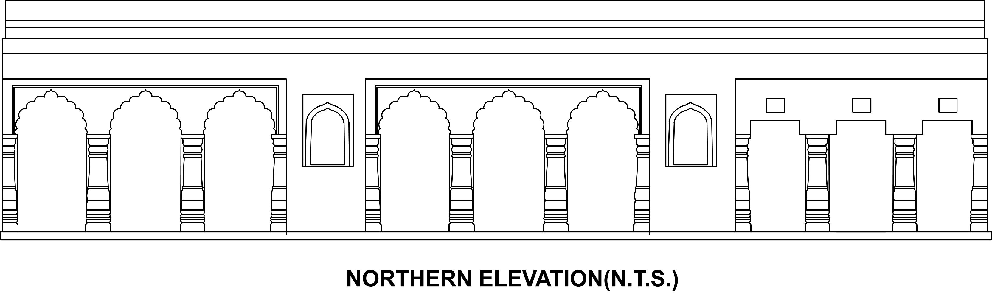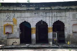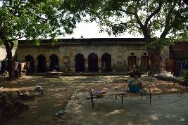 The building lies in the enclosure wall and entered through an arched gateway bearing the name plate inscribed on marble. A small rectangular veranda is provided in the front of the rooms supported by the fluted columns.The verandah has seven bays wide multifoliated arches openings. It has a flat roof built of sandstone slab and slab supported by Iron beam. At the east end of the building, there is a staircase leading to the roof which is flat. It has been lime washed. No prominent ornamentation is observed on the surface of the structure. It is built with a large forecourt.