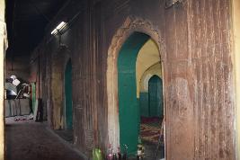 The courtyard with the building is known as the house of Ali Bahadur, the first Nawab of banda, and the mosque building is located inside this courtyard.