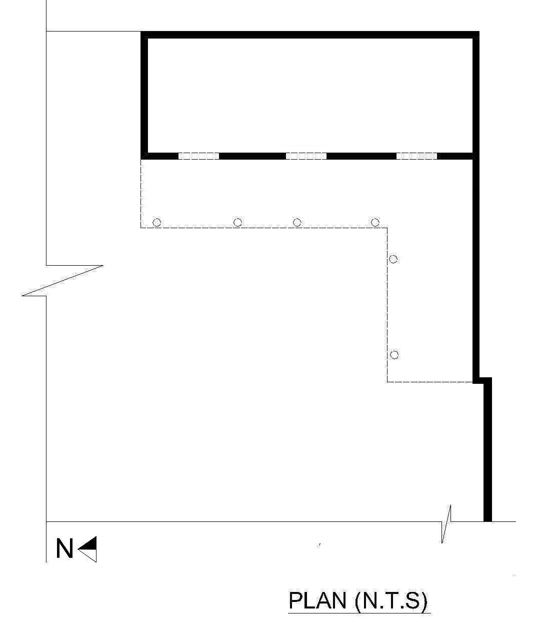 The late Mughal building is rectangular in plan and it consists of four rooms and a shaded verandah. Two of these are used for cooking purpose, while the remaining two are used as a store room. It has late Mughal characteristics. There is a cusped arch recess on the front facade and under the arch is an opening with a corbelled doorway.