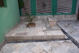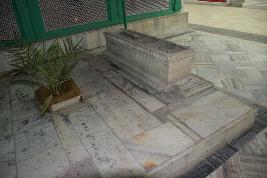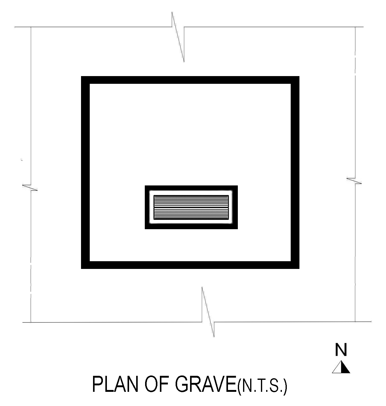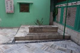 The grave platform is constructed around a courtyard and is paved with marble. The grave is of marble finely engraved and inscribed with a quotation from the Quran. It measures approx. 1.8 m by 0.6 m and 0.42 m high. The grave has been removed from their original position.