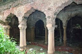 The pretentious structure is rectangular in plan and stands on a raised piece of ground. It consists of a three-arched dalan, supported on double fluted Shahjahani columns opening to the west, and flanked by a side chamber on the north and south. The courtyard is approached through flight of steps on the west. The ceiling of the building is flat. At the north end of the building, there is a staircase leading to the roof which is flat.