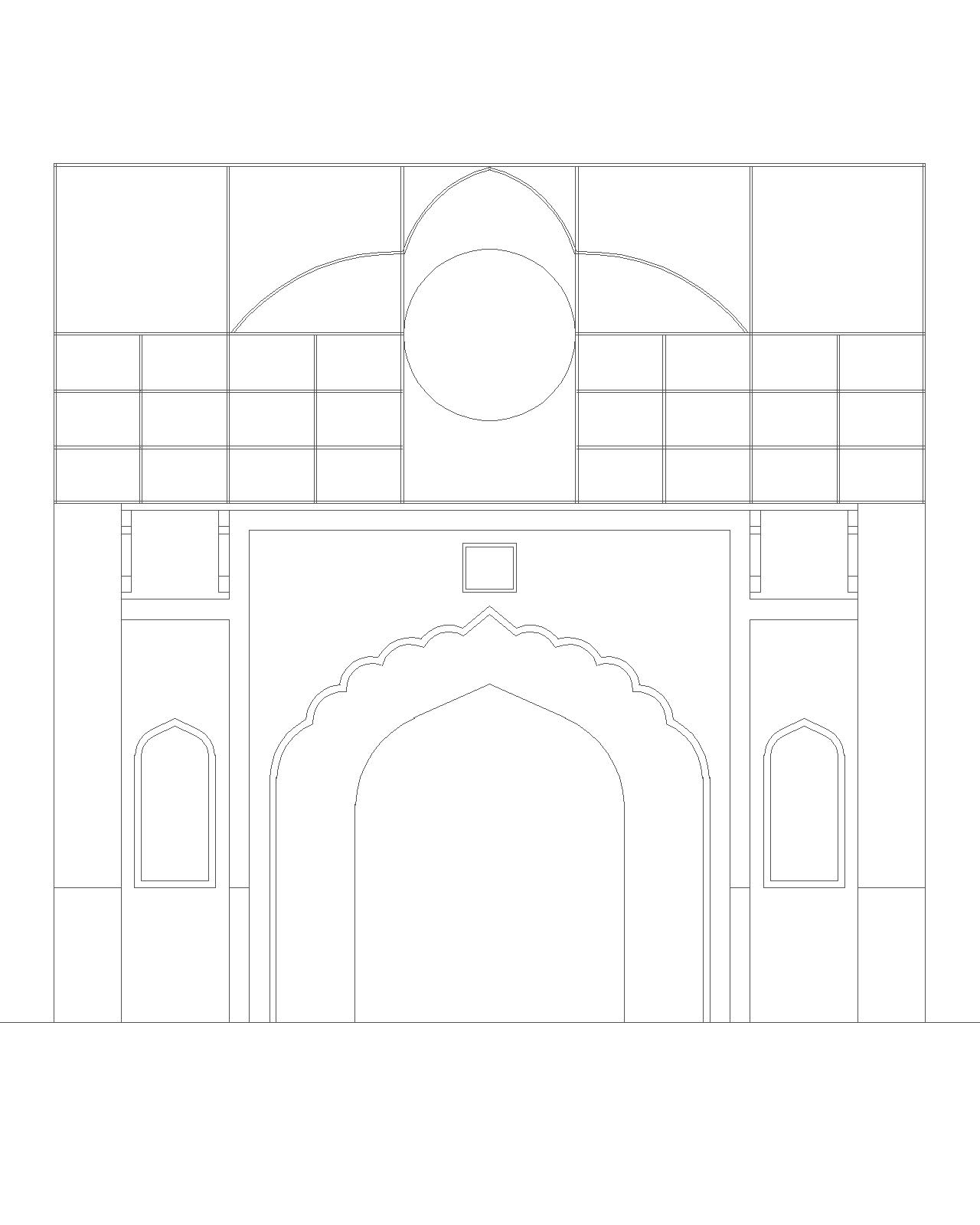 This is an impressive gateway with foliated arch design made in typical Shahjahani style. Above, the gateway there is a rectangular hall that functioned as a traditional drum-house naqqar khana .
