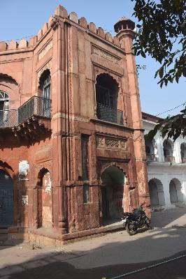 This structure is made up of Red kota sandstone and lakhori bricks with lime mortar plastering. The balcony is made up of wood and iron bars.