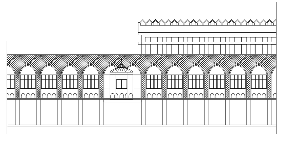 It has been completely renovated, however the present building constructed by brick and cement has multiple arched openings and battlemented designs as part of parapet wall.