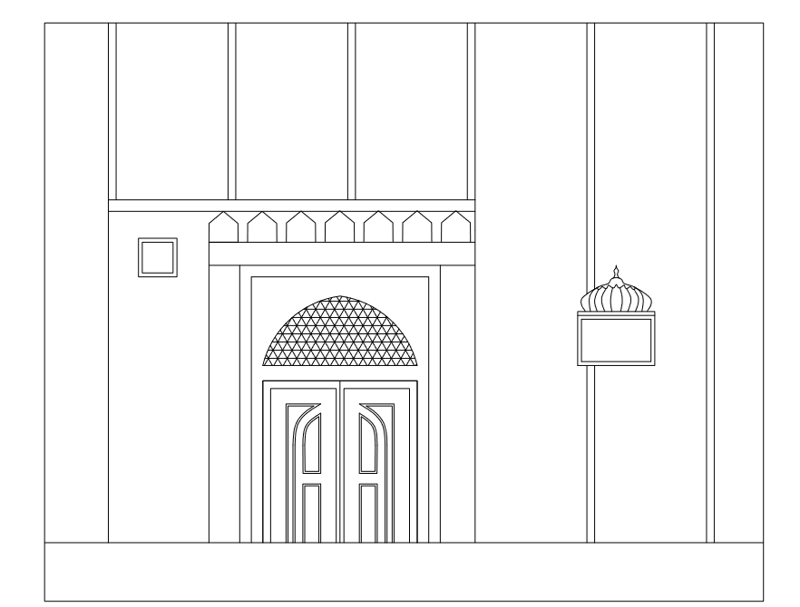 The mosque has a large court which is entered through openings on the north and north-east corner. The mosque is single-storeyed with five arched doorways leading to the prayer chamber. It has an inscription on the southern facade.