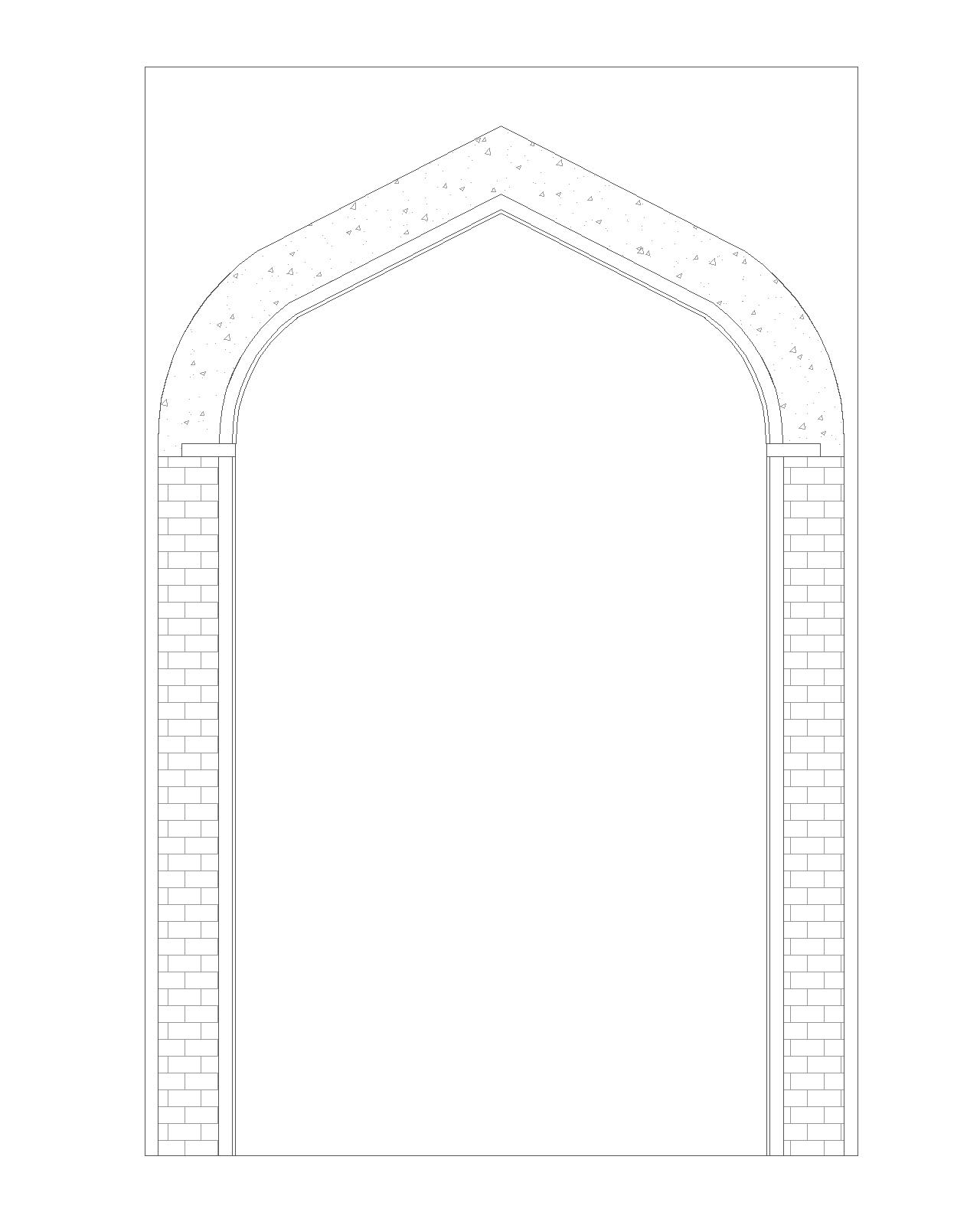 The gateway has a recessed arched entrance. It is a scientific horse-shoe arch made with sand stone.There is small arched designs on the gateway. The upper portion is broken. The massive wall is adjacent to the gateway.