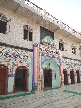 The magnificent mosque is now a renovated structure. The present structure of the mosque has highly embellished facade. The multi-cusped arched openings, pillars, dome are the prominent features of the mosque. The inside of the structure has corridors having many arched openings. Though the structure is majorly renovated and altered but at the same time it retains the historic fabric of Late Mughal era. |