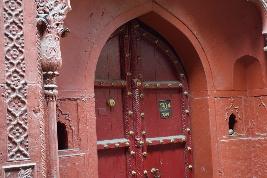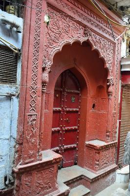 The facade of this structure is made up of red sandstone. The wall is made up of lakori bricks and plastered with cement. The main door is made up of wood and supported with iron bars. |