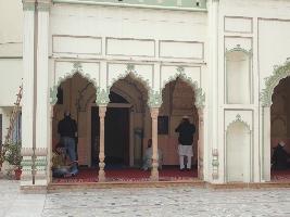 The mosque is roofed by three bulbous domes and arched facade. There are small minarets on all the four corners. The domes have ribbed pattern and inverted lotus crestings. Battlemented parapet is another important feature. There are alcoved niches also made on the frontal wall. |