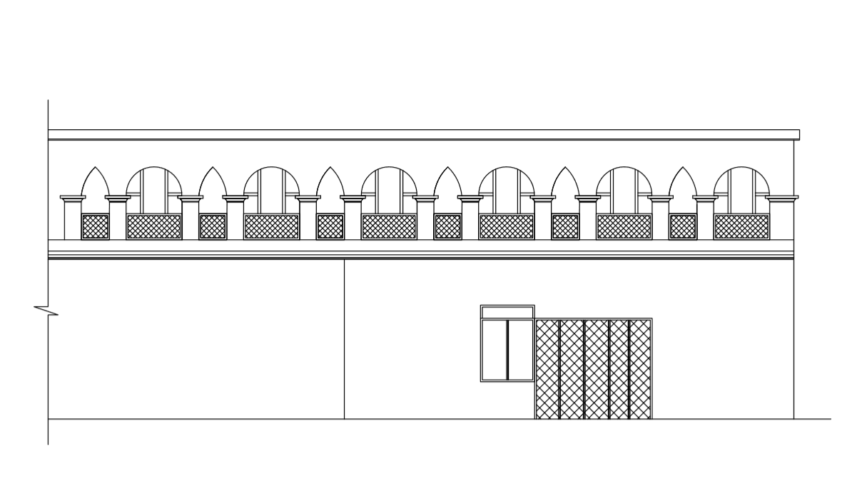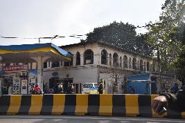 It is a grand structure with a series of semi-circular and pointed arches.It is a double storey building built on a rectangular plan with north west entrance. The ground has semi-circular arched design openings. There are a series of alternate pointed and semi circular arches at the upper storey. The roof has extended cornice supported by brackets.