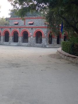 The majestic colonial style building of the school is constructed within a large compound. The school building has arcaded corridor. The semi-circular arches are supported by thick rectangular pilasters and pillars. The terrace has a decorative design on parapet. The school has green surroundings. The building has a cornice above the arched openings. It has a plain flat roof. |